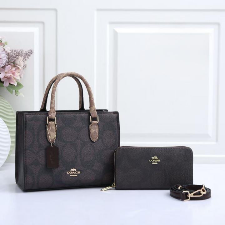 COAC.H MAGGIE BROWN TOTE SIGNATURE CANVAS WITH EXTRA WALLET PREMIUM WITH OG BOX