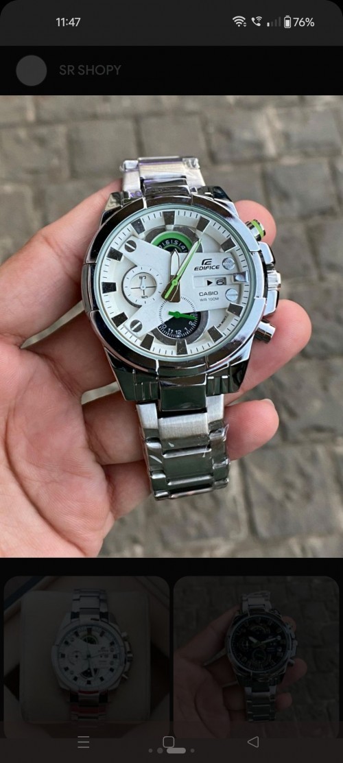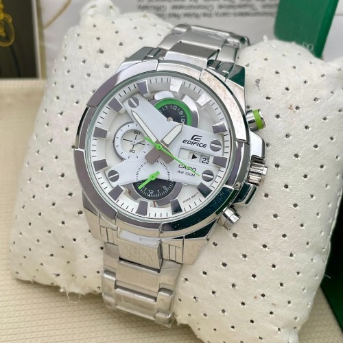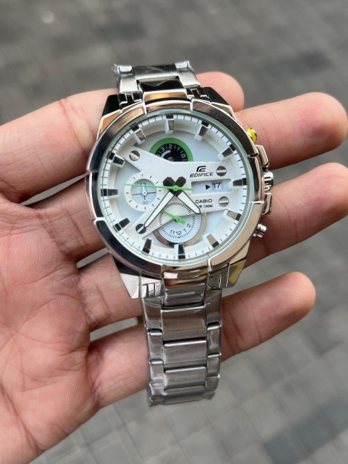 EDIFICE CASIO SILVER WHITE CHRONOGRAPH WATCH PREMIUM QUALITY