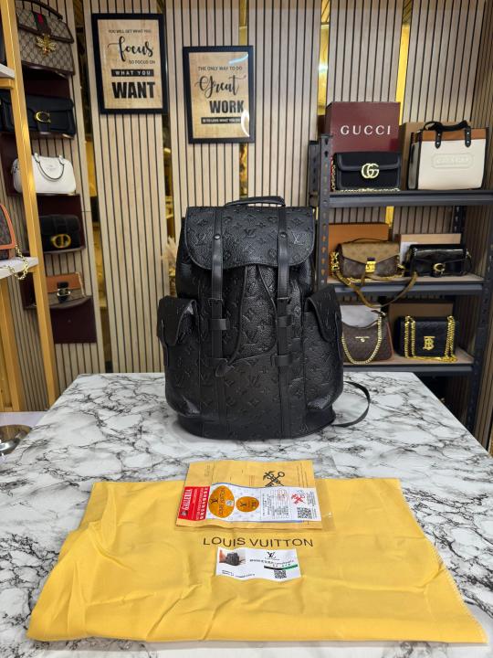 Louis_Vuitton Christopher Embossed Taurillon Leather Backpack (Black)